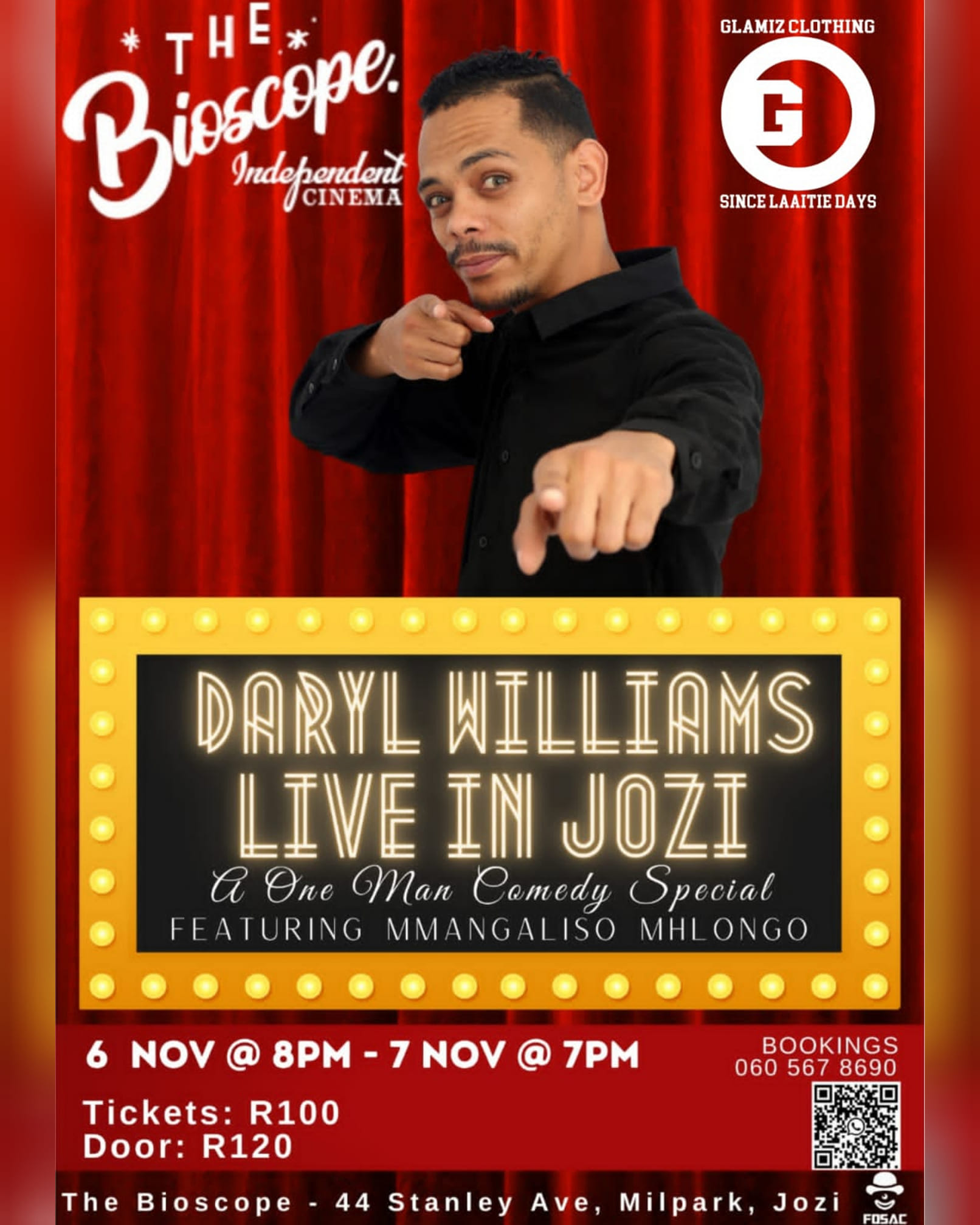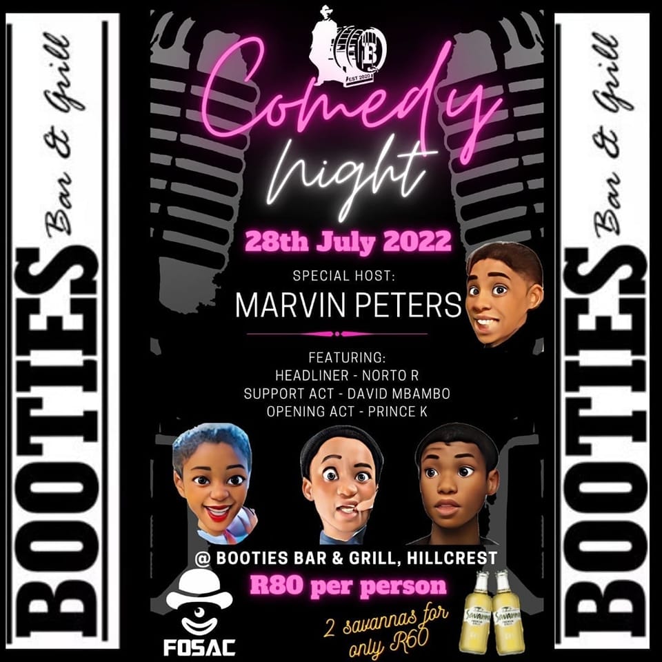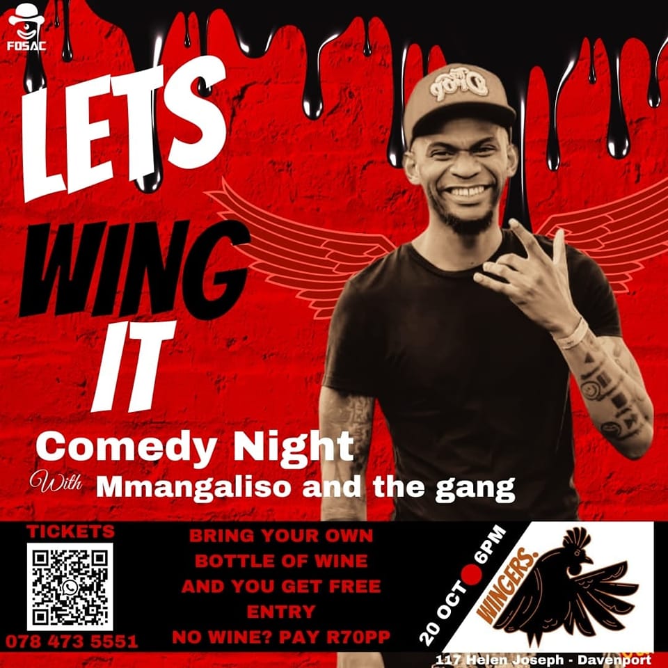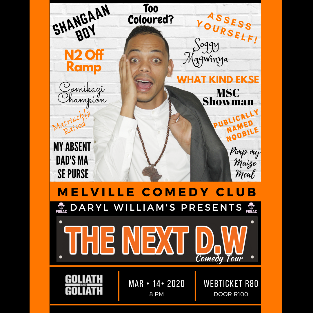more shows Let's Wing it Mamello's Comedy & Jazz Fedora's THe food box comedy night Daryl williams live in JHB - The Bioscope The next DW - Melville comedy club Booties bar Comedy Night